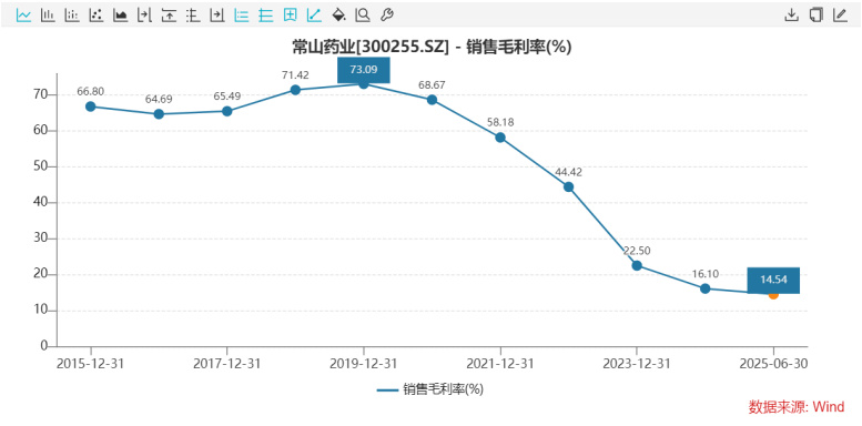 而且,2019年至2025年中,公司毛利率从73.09%一路俯冲至14.54%,年均下跌近10个百分点;2025年二季度单季仅5.03%,已逼近盈亏平衡红线。这或许是由于肝素原料药价格持续低迷、集采制剂销量下滑所导致的。